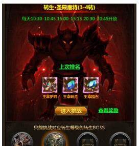 难度最高的转生BOSS,不仅对于玩家的入场资格有着限定,而且只在固定时间开放,攻略难度极高,需要所有强者齐心协力才有机会成功,最终的奖励可是有着极为珍贵的主宰碎片哦。