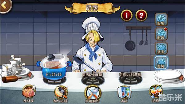 作为正版授权手游的《航海王启航》,自然也还原了原著中那些经典料理,其代表就是山智厨房。目前厨房一共分为食材库、制作进程、开始制作、冰箱和招待五个模块,玩家点击开始制作,可以按照已经习得的食谱制作料理,或者是研究新的配方。料理玩法的推出一方面是为了适时放松玩家们因为战斗紧绷的神经,另一方面就是通过招待伙伴,全面增强角色的战斗力。