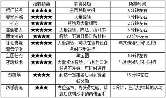 晚间活动有决战九霄、幻月洞府、门派挑战、十二星座传说、科举考试、帮派竞赛、天下会武、七脉会武等,晚间活动可以获得游戏道具,是金币收入的主要来源,且一些珍稀道具的碎片都是晚间活动获得的哦。有时间的少侠可以都参加,如果时间不充足的话,兜妹推荐少侠放弃那些竞技活动,因为耗时较长。不过决战九霄、幻月洞府、门派挑战、十二星座传说、科举考试这些耗时短且收入高的活动少侠们还是不要放弃的好。