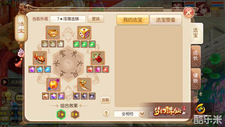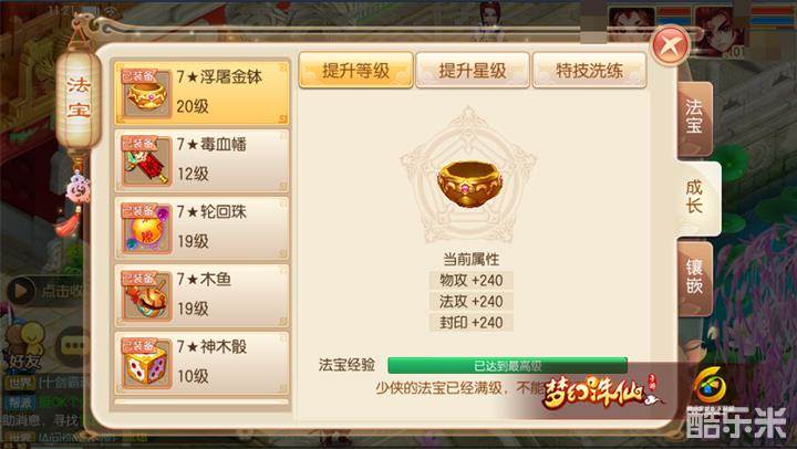 最后的法宝玩法,玩家需要了解其属性与等级、星级有关,所以在刚开启法宝玩法时不建议耗费大量的财力在提升法宝的等级上(由于星级较低属性提升并不明显),个人建议当法宝提升到5星后再开始提升法宝等级,这样带来的收益会可观许多。