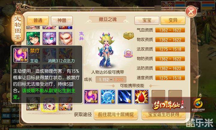 撒旦之魂之所以被定义为血耐型宠物是因为具有十分出色的气血和双防资质,其高达1622的资质可以和进阶后的魔兽相媲美,培养一个出色的撒旦之魂可以在竞技战斗中吸收更多伤害从而变相的保护玩家。