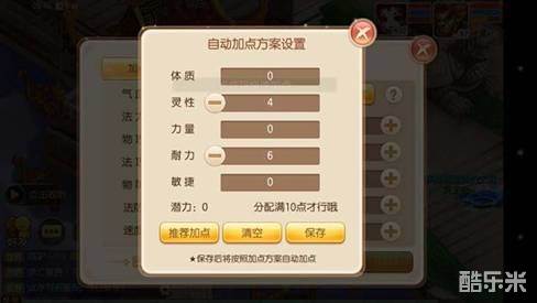 当少侠提升到相应的等级就会开启加点系统,点开界面的提升,打开人物加点,每升一级会有5点潜力点可供少侠分配,如果少侠觉得每升一级就要加一次潜能点太过于麻烦,也可以开启自动加点设置, 少侠提前设置好10点潜力点的分配方案,每当有10点潜能点的时候系统会自己分配,是不是省事了许多,最后兜妹提醒下少侠,虽然系统会赠送给一个人物洗点道具,但是,如果能省下来,为以后的换点做基础,那不是更好,所以少侠加潜能点的时候一定要慎重!