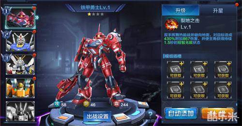 每个机甲解锁激活之后,都是一级一星的状态。玩家可以通过升级和升星机甲,来提升机甲的战斗力。其中升级机甲需要玩家收集机甲模组,每个机甲有六个模组插槽,当六个插槽插满之后,就可以为机甲升级啦,所有的机甲模组可以在精英级的副本中获得。机甲的升星相对来说就比较简单了,只要玩家收集浓缩合金就可以为机甲升星啦,浓缩合金可以在精英级关卡和贸易站中获得。