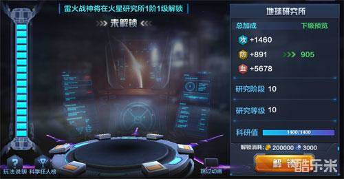 机甲研究所的升级需要足够的科研值,消耗金币和氪金对科技进行研究,会增加科研值。每个研究所每满十级,自动升为一阶,当研究所升满十阶十级,将解锁新的研究所。并且只有研究所达到一定等级后,才可以解锁对应的机甲哦。最后,解锁机甲之后,还需要玩家在机甲界面中通过金币和钻石激活。