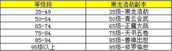 黑龙浩劫副本根据玩家等级提供不同等级段的副本供玩家挑战,一般10级为一个等级段,超过这一等级段后只能挑战下一等级段的副本。