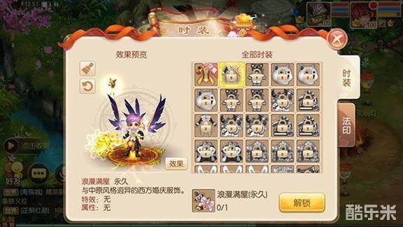打开包裹,在人物装备界面,点击“时装”,可以进行时装解锁、穿戴、卸下等操作。要注意时装属性要生效需要在时装效果中勾选。