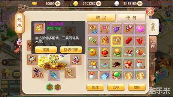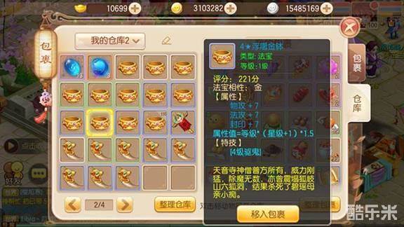 或者点击包裹中的物品,会弹出“移入仓库”提示,点击即可存入仓库,同样点击仓库中的物品,会弹出“移入包裹”提示,点击即可移入包裹。
