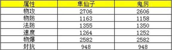 以100级人物等级为例,隼仙子和鬼厉属性面板对比: