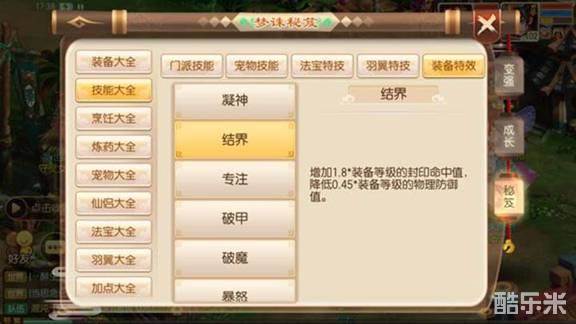 至于装备特效,首选专注、凝神、结界、离弦、神速、疾行、灵巧、雷厉、灵敏、风行等,因为这几个特效都是增加封印命中率和速度的。