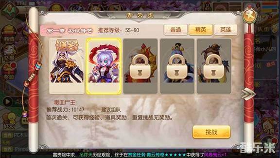 5、精英难度只能挑战推荐等级与自身相同的章节。