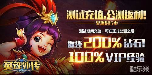 《英魂外传》本次删档计费测试共计7天,召唤师只需每天登录游戏,即可领取共计10万钻石、海量VIP经验以及极品道具等豪华大礼。 本次测试将开放充值功能,在游戏公测7天内即可获得充值金额200%的钻石以及100%的VIP经验返还,助力英魂召唤师快人一步。