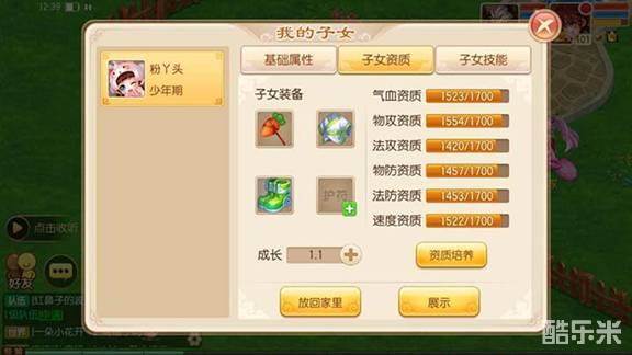 子女成长值初始为1.1,可以通过成长快乐来培养增加,次数限制为50次。