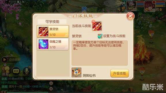 2、每个门派的技能都能提升,但是同时只能设置一个门派技能作为战斗技能(即:设置为战斗技能的才能在战斗中生效)。