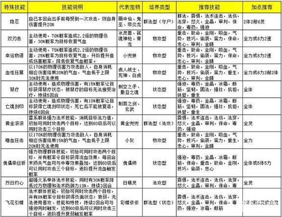 特殊技能的效果非常多样化,不同的特技产生的效果完全不同,所以在对特殊技能宠物培养时也会有非常大的可塑性。