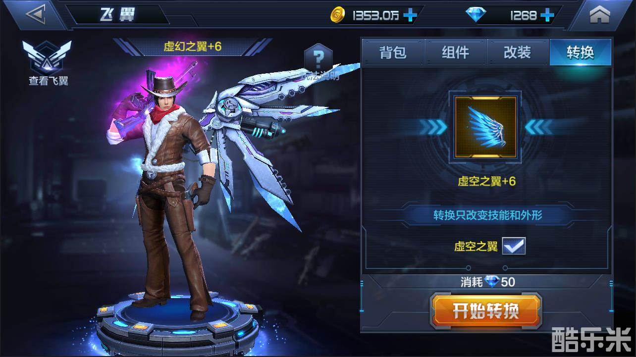 飞翼可以通过转换的玩法变为同品质的其他两种类型飞翼,转换完成之后飞翼的名称、外形、技能都会变成新的飞翼,但是属性上并不会有所变化。但是只有黄色品质的才可以进行转换。
