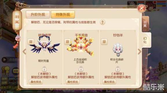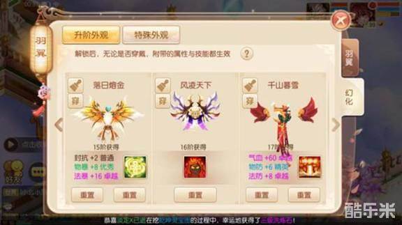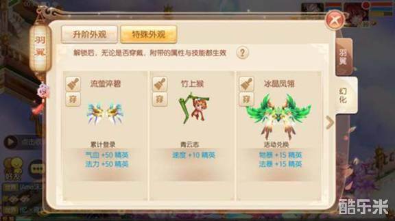 特殊羽翼比较稀有,获取难度很高。特殊羽翼可以给人物提供额外的属性和技能,一般比普通羽翼要强大。