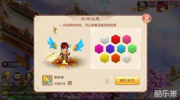 羽翼染色需要消耗一个幻彩绒,染色是随机的。
