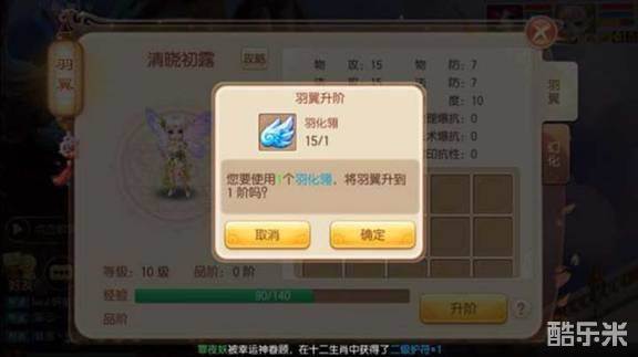 羽翼升级需要使用道具灵羽或者仙羽。