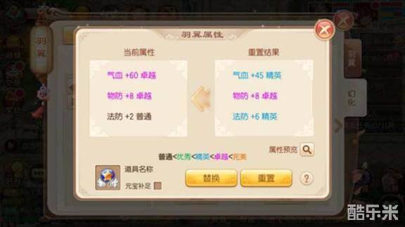 对于当前品质不满意的少侠,可以重置。