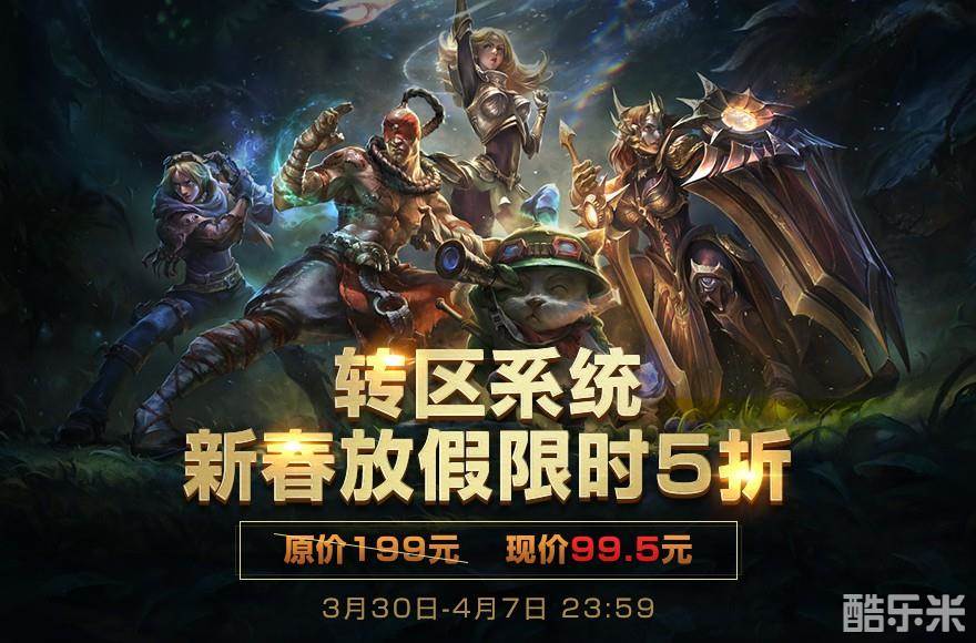 转区系统限时半价:从即日起至4月7日 23:59,英雄联盟转区系统转区费用由原价199元调整至99.5元,有希望转大区和昔日小伙伴一起开黑的召唤师可以前往。