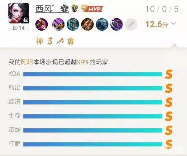 2.尽量使用刺客型英雄。使用刺客型英雄也不意味着其他英雄就不能够拿到6S神迹,只能说是很难,因为这六个方面的评分包括了KDA、输出、经济、生存、带线、打野。即使你相当carry,但是你没有打野,最多也只能拿到5S评分,而打野则只能评为D-。