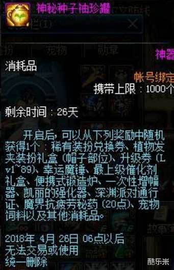 可能有些玩家也注意到了换衣间兑换卷旁边的那个新上架礼包,神秘种子礼包,405点券一个,能获得一个植物头部装扮和10个神秘种子袖珍罐,袖珍罐里面有稀有装扮兑换卷,锻造炉,魔锤,增幅器强化器等等,看起来性价比很高。