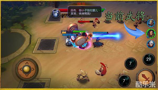 《魔霸三国》的界面按功能分为左右两部分。左半部分划分给了虚拟摇杆,摇杆可以在整个左侧活动。用手指按住摇杆就可以操作武将进行移动,移动方向与手指移动的方向一致。