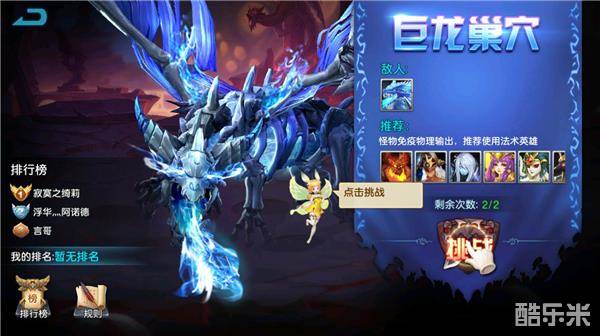 温馨提示:在巨龙巢穴中的怪物都具有上古庇护,具有极高物理免疫,建议上阵法术攻击英雄。在战斗过程中,可尽量使用续航能力强的英雄,保证生存能力。