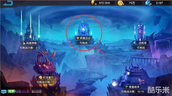 当玩家达到26级时,可以参与英雄远征挑战。在游戏主界面中点击“黑暗之门”,即可看到“英雄远征”入口。