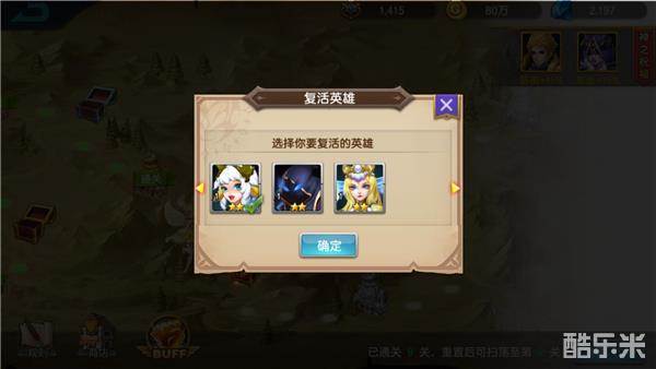 6.当战斗后有英雄阵亡,开启宝箱有一定几率触发复活一个英雄的祝福效果。
