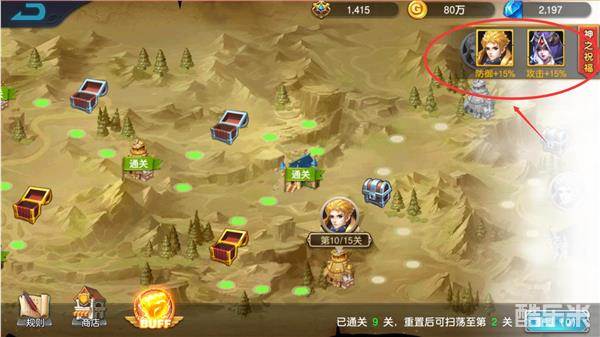 1.远征一共有15关,战胜一关可开启宝箱,第15关宝箱有几率直接获得英雄。