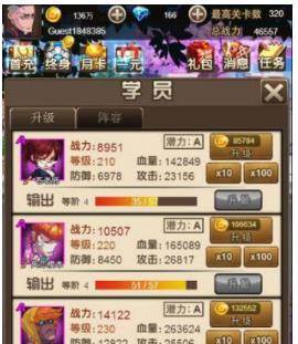 用刷到金币提升学员的等级是最最基础提升战力的方法,不过还是要给讲个小技巧,品质越高的学员提升一级花费的金币需要更多哦。