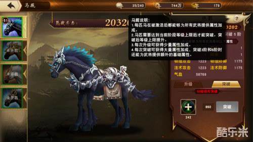 草料可以通过竞技场以及勇者试炼中的秦代古墓来获得 ,还有对应的突破石。而且随着马匹等级的越高,还可以给武将增加武力、智力、物理攻击、和物理防御等属性。