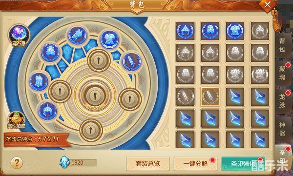 圣印可以使用五行晶魂强化,强化等级越高,属性越高
