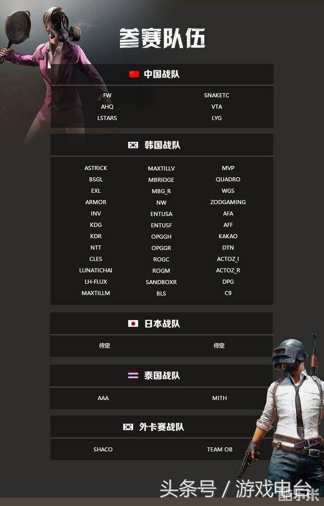 来自中韩日泰等一共48支队伍进行比赛,其中国内也有6支战队接受邀请参与APL赛事,他们是:FW、SNAKETC、AHQ、VTA、LSTARS、LYG,将和其他42支队伍展开巅峰对决,到底谁能绝地求生。