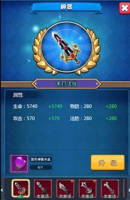 这个第一个神器末日决战是解锁神器功能后就可以激活的,属性增加面板就可以看见。而且相对来说这把剑的样子看起来还不错。