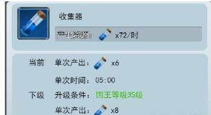 这里可以看见每小时产出资源72个。每5分钟产出6个材料。