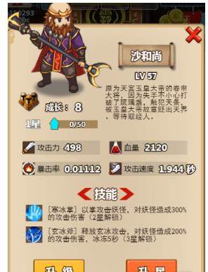 可以看到沙和尚的攻击力并不高,寒冰掌与其他角色的一技能一样都是3.0加成的输出技能。