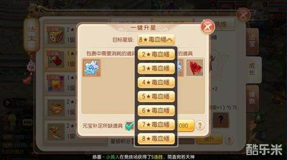 4、一键升星不会用已经装备的法宝作为材料来升星。
