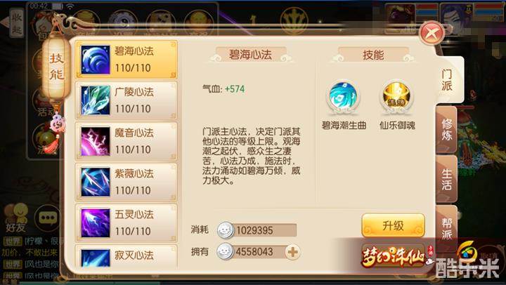 1)碧海潮生曲:这是类似八荒玄火阵那种每个门派都有的一个群体技能,法术攻击2个目标,技能等级30/60时增加一个目标,通常作用于挂机和日常活动,不需要休息回合,群秒四个输出伤害也比较可观。