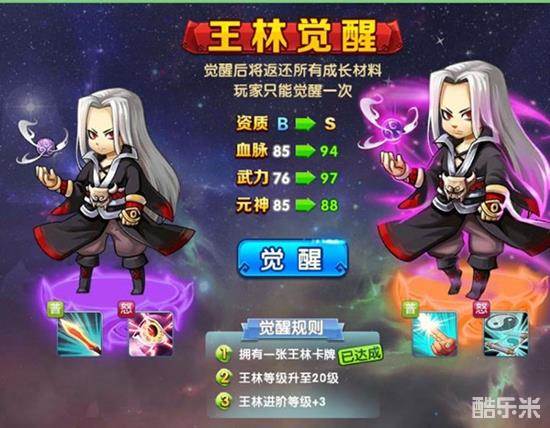 当然,要想将B级资质的紫卡进阶为S级资质的橙卡,自然也是需要费上一番手脚。除却需要拥有游戏开始时系统赠送的一张王林卡牌之外,还需要将这张王林卡牌等级提升至20级,进阶等级+3,,虽然不难,却也并非一时之力可达。