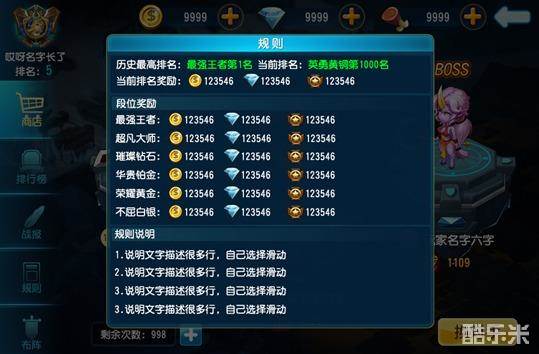 2.每个段位的前10名,可挑战npc,战胜npc后,可升至下个段位