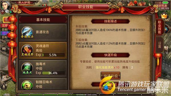 高级灵魂道符:消耗3点魔法对敌人造成106%的道术伤害,并额外附加170点道术伤害。幽冥火咒技能伤害高,灵魂道符相对来说伤害低。