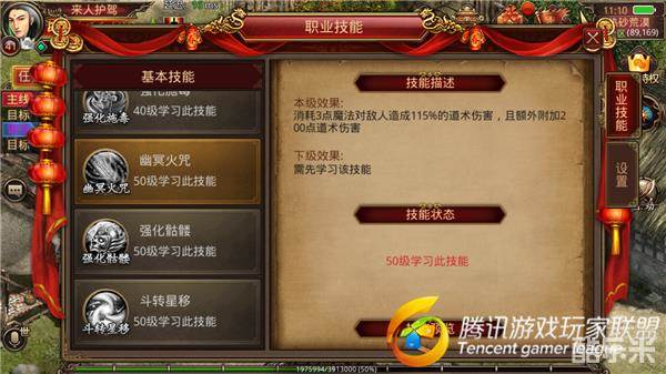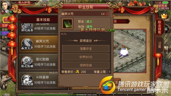 初级幽冥火咒: 消耗3点魔法对敌人造成115%的道术伤害,并额外附加200点道术伤害。