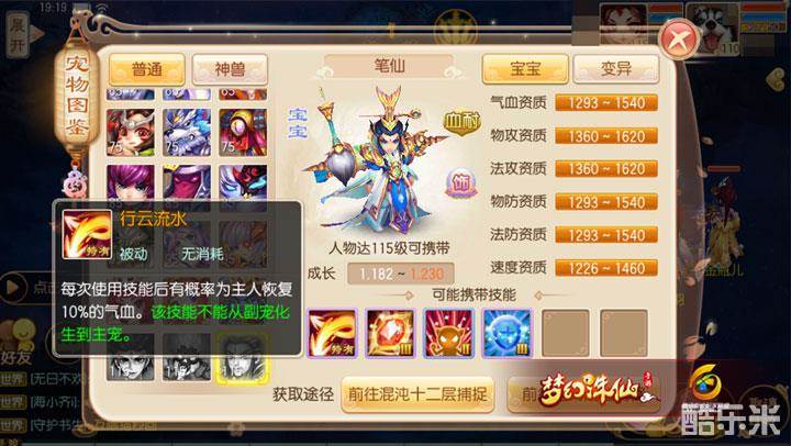 虽然笔仙被定义为了血耐宠,但资质方面并不算理想:气血资质以及双防资质是不低,但最高的还是攻击资质,而与之前的血耐宠巨灵神相比明显有些差距,所以笔仙的抗揍能力只是一般。不过从实际培养角度来看,血耐型的笔仙无疑能发挥出最佳效用,而原因在于其天生技“行云流水”。