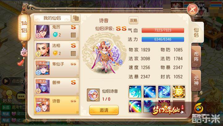 由此可见诗音并不是一位专注进攻的输出型仙侣,如果要总结其特点的话那就是生存力较强、拥有辅助手段、输出能力尚佳的存在,而现阶段的主流阵容中确实有适合她上阵的搭配方案: