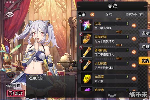 点击圣神水旁边的小“+”号,可以直接进入商城,会有可爱的商店娘迎接你: