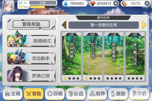 在剧情模式里,既可以挑战主线关卡,也可以回忆之前的精彩剧情。通关主线关卡不仅可以获得圣神水等稀有资源,如副本、梦境、委托等功能解锁也对主线进度有所要求。据说冒险家如果满足某种条件,还能够进入“噩梦”模式,在迥然不同的故事中遭遇全新的敌人...