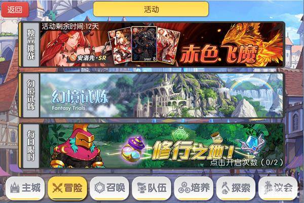 活动副本分为三大类,幻镜试炼是考验玩家极限水平的固定玩法,挑战每日限时副本会带来巨量的经验与魔能。而独立挑战副本会获得包括SR级伙伴、圣神水等各种珍惜资源,独立挑战会定期更新。