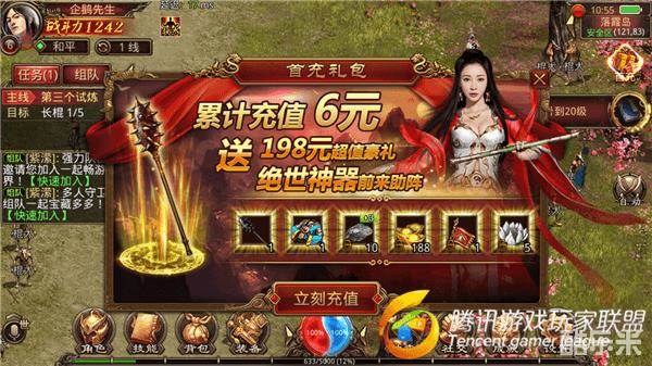 首充礼包大家应该都是知道的,在进入传世后,首充礼包是必拿的!首充礼包带来的资源倒是次要的,主要是两件无级别!这可以让玩家在前期快速的刷怪,让大家更快的提升自己的等级!在野外强精英怪时,也能打出更高的伤害,从而有更大的机会获得装备、道具!